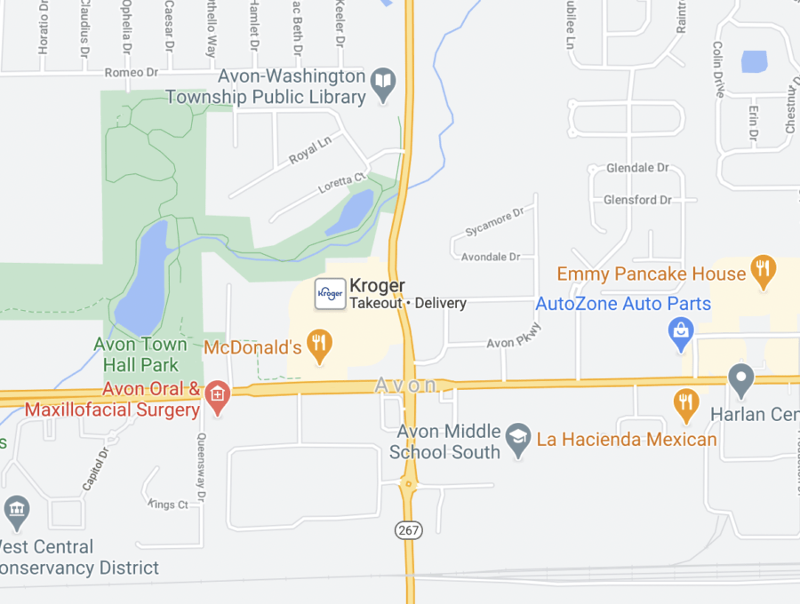 This intersection is just north of many of Avon’s public schools, and is also a hub of commerce and retail in the city. This means traffic volume ebbs and flows throughout the day but is always high. A roundabout on State Road 267 just south of the intersection can add to the confusion of drivers, especially during times of high traffic volume.